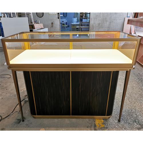 不銹鋼展柜設計定做廠家為您展示的是2020新款拉絲香檳金不銹鋼珠寶展柜_高端珠寶展示柜