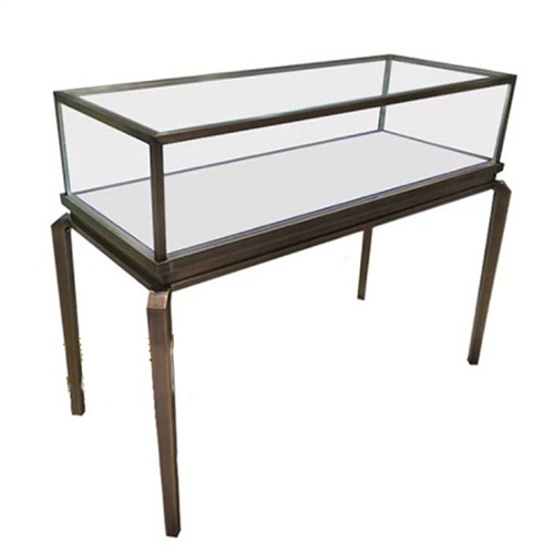 黃古銅不銹鋼玻璃展示柜_不銹鋼珠寶展柜定做