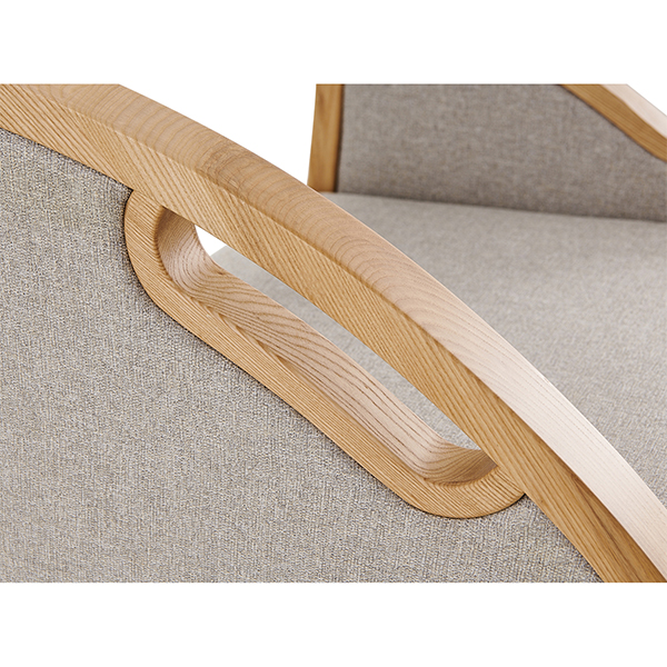 【材質(zhì)說明】: 扶手外框采用A級(jí)白蠟?zāi)局谱?,木扶手?jīng)開料、造型、打磨、噴漆制作;座背軟包可選配布紋及皮革軟包。