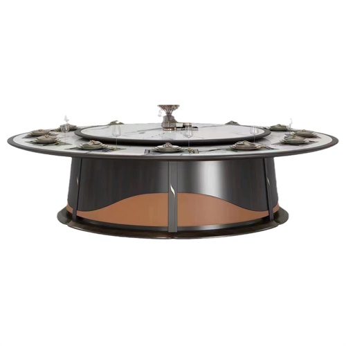 酒店會所新中式輕奢巖板電動餐桌大圓桌圖