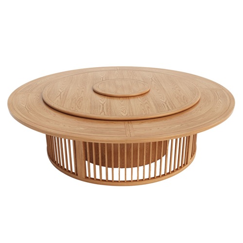。這款酒店包房新中式風格禪意實木電動餐桌非常高端大氣,轉盤面設計為兩層,轉盤的顏色與圍板的顏色都設計為一體色彩,讓電動餐桌上下更加呼應,還有電動餐桌底座設計采用很前衛(wèi)的豎行格柵實木裝飾,擺放在會所包房內熠熠生輝,非常大氣端莊。