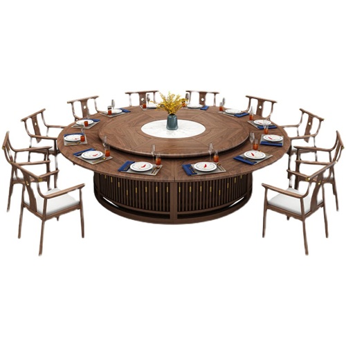 酒店包廂新中式實(shí)木古典電動(dòng)轉(zhuǎn)臺(tái)餐桌設(shè)