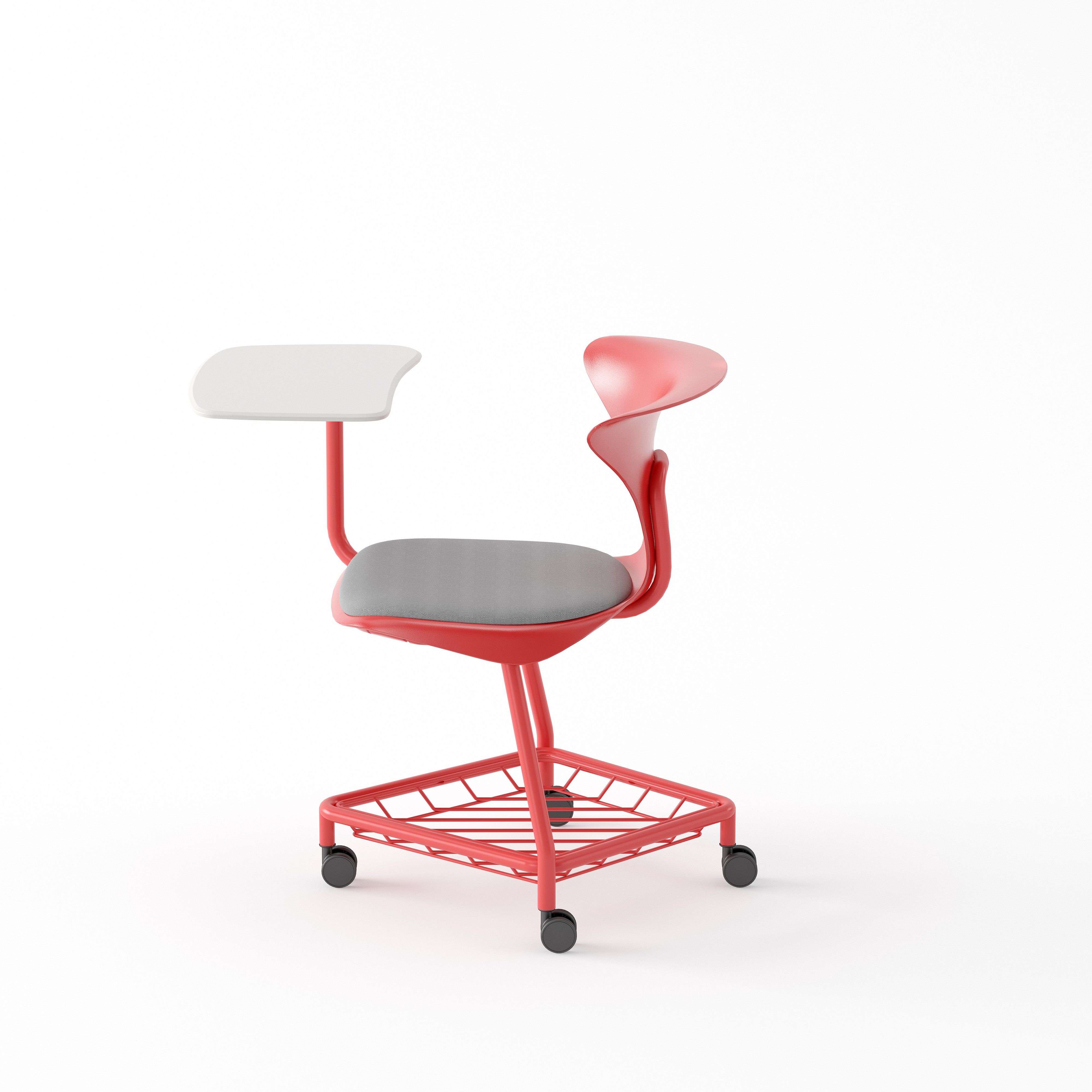 立足于學(xué)生健康坐姿的維護和學(xué)生之間交流研討的便利性,座背的環(huán)抱造型以及坐墊下翻設(shè)計,滿足超11種姿勢的支撐需求,鼓勵學(xué)生進行小組協(xié)作交流。