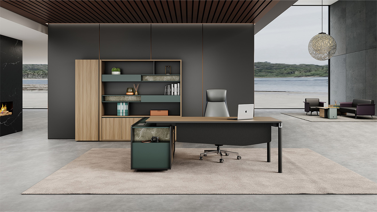格調(diào)系列是延續(xù)了格瑞系列外圓內(nèi)方的設(shè)計理念,產(chǎn)品更新?lián)Q代自然流暢,既留下了品牌歷史沉淀的精華,又更大的利用了現(xiàn)有的產(chǎn)品資源。在外觀造型上加以創(chuàng)新,配色上結(jié)合市場潮流色暗夜綠和被市場普遍認(rèn)可的木紋色美洲尤加利調(diào)配在一起,在加上一點裝飾輔色,整體呈現(xiàn)的外觀效果是顏值高,整個系列配置齊全,設(shè)計時尚,適合各種規(guī)模的辦公場所。