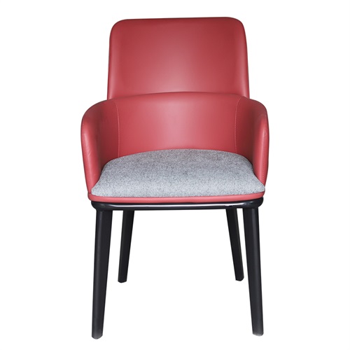 餐廳家具廠家為您展示咖啡廳現(xiàn)代簡約紅色皮革實(shí)木扶手餐椅