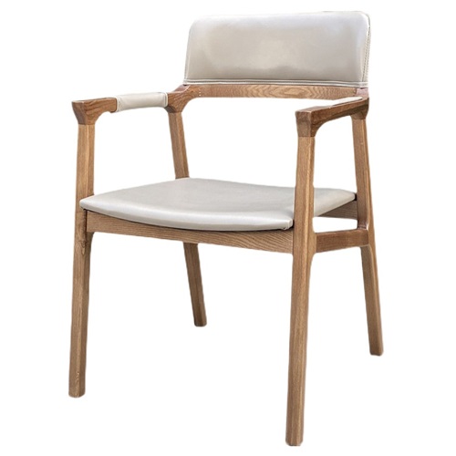 餐廳家具廠家為您展示咖啡廳飲品店白蠟木實木皮革軟包餐椅扶手
