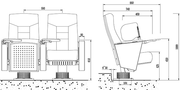 座椅深度:860±10mm,扶手高620±10mm:最小排距:900mm。