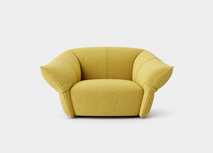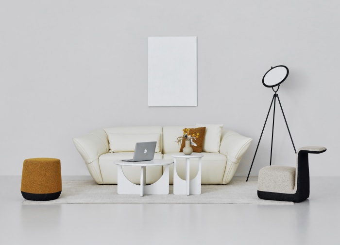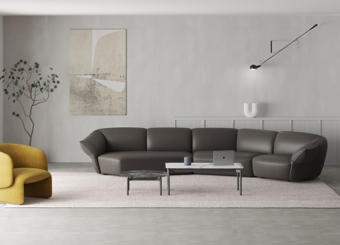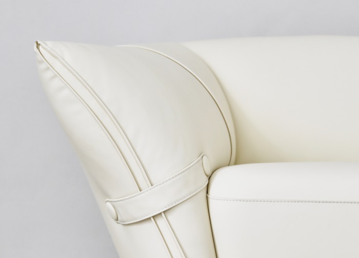 花朵盛開時,花瓣和花蕊會展開,設(shè)計師從花朵的外觀形象中提煉出花瓣盛開時的姿態(tài),并應(yīng)用到沙發(fā)的設(shè)計中。沙發(fā)的扶手采用了往外張開的形狀,類似于花朵的花瓣展開的姿態(tài),同時扶手上還有滾邊點綴,使得整個沙發(fā)看起來更加生動有靈性。此外,沙發(fā)的扶手還可以作為靠背傾靠,滿足人們側(cè)坐時的需求。兩側(cè)拉扣的設(shè)計將外張的扶手往回收攏,猶如花瓣被花托收攏的形態(tài),使得產(chǎn)品設(shè)計更加完整,有生命力。