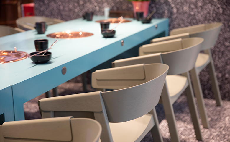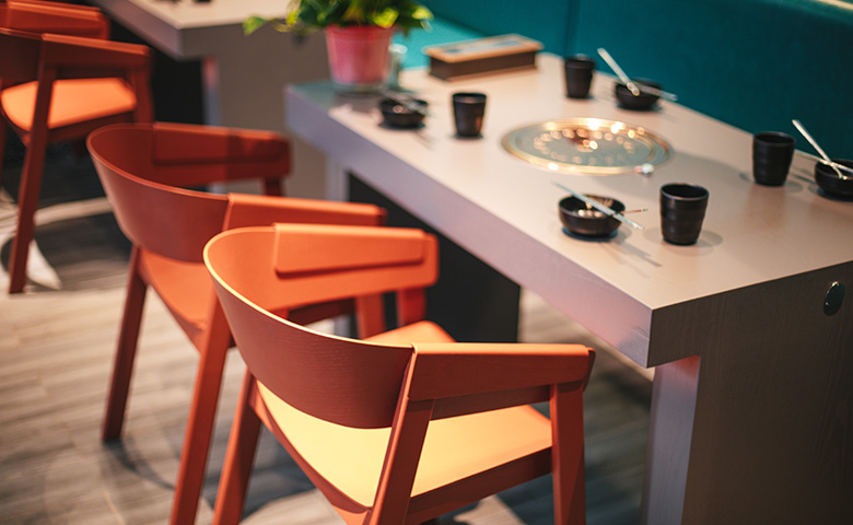 采用三朗曲木椅系列產(chǎn)品,整體按區(qū)撞色設(shè)計(jì),秀食可餐。