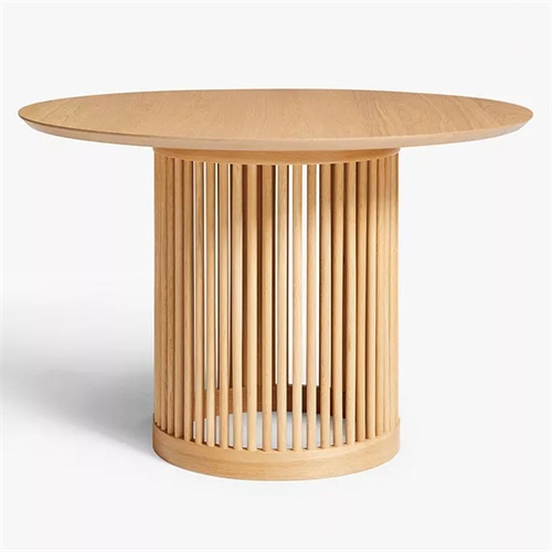 餐廳家具廠家為您展示湘菜館中餐廳新中式簡樸實(shí)木餐桌圖片展示\價(jià)格說明\定做服務(wù)。這款湘菜館中餐廳新中式簡樸實(shí)木餐桌,采用實(shí)心橡木和橡木貼面制作了這款圓形餐桌,具有令人放心的堅(jiān)固和耐磨飾面。餐桌底座由主軸桿制成,使桌子具有觸覺邊緣并增加了光感。此外,保護(hù)漆涂層突出了木材的自然色彩和色調(diào)。