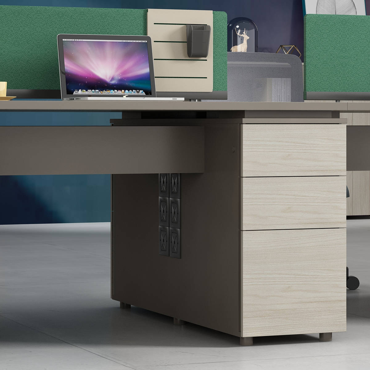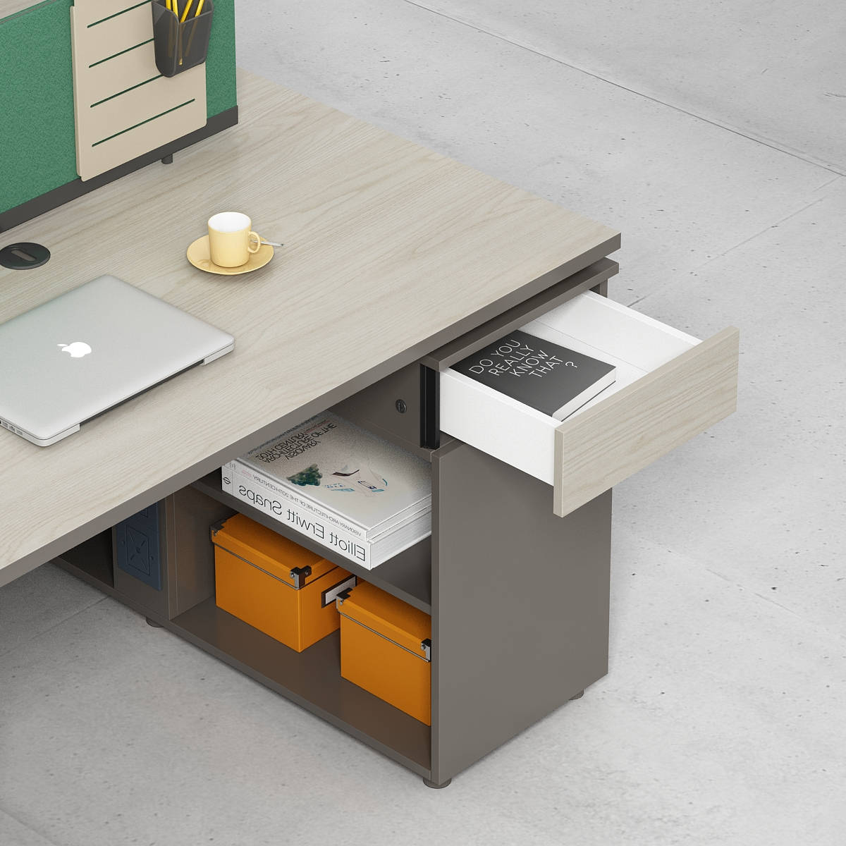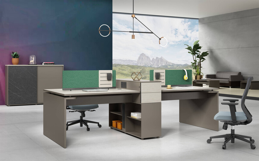 產(chǎn)品采用懸空設計,層次分明,錯落有致,產(chǎn)品多處采用45度拼接設計,拉米諾連接工藝,美觀又大氣,整體配色選用泰坦胡桃與琥珀棕搭配,充分體現(xiàn)產(chǎn)品高品位的氣質(zhì),是現(xiàn)代都市辦公空間最佳選擇之一。
